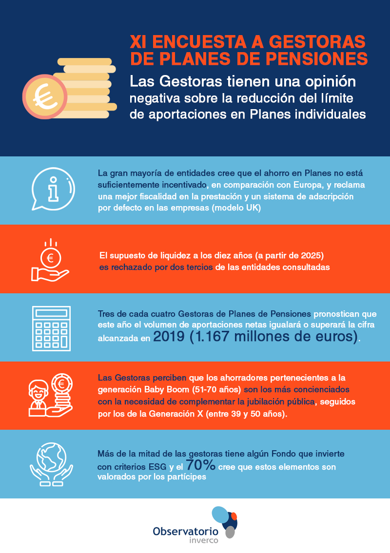 El 75% de las Gestoras de Planes de Pensiones pronostica que este año el volumen de aportaciones netas igualará o superará la cifra alcanzada en 2019 (1.167 millones de euros), según los datos que refleja la XI Encuesta sobre Planes de Pensiones Individuales elaborada por el Observatorio Inverco. Además, tres de cada cuatro Gestoras señalan que, durante los últimos 12 meses, se ha producido un incremento en las aportaciones a Planes de Pensiones en su entidad, con respecto al año anterior.